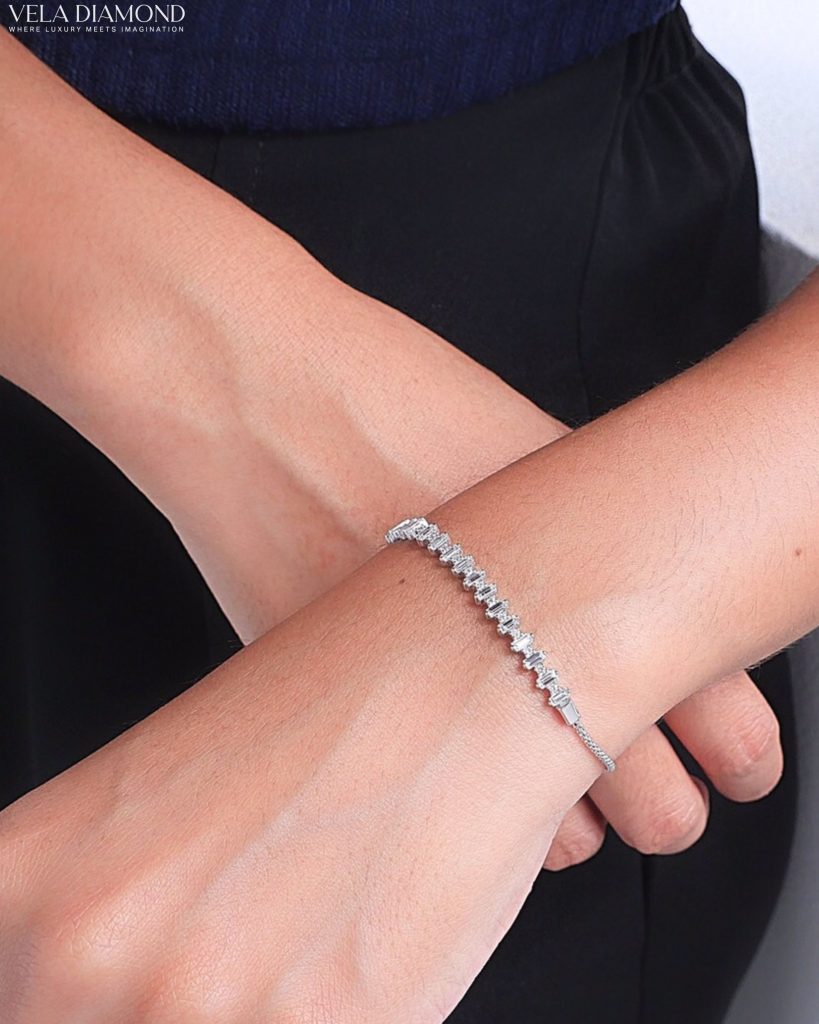 - Adorned with meticulously arranged baguette-cut diamonds.