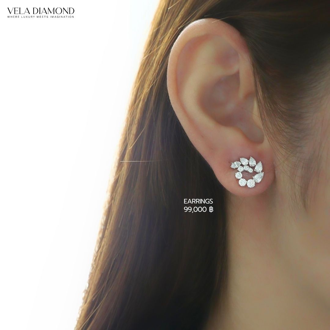 These natural diamond earrings feature a softly curved design that follows the natural contour of the ear. The flowing silhouette is carefully crafted and set with a refined mix of marquise-cut, pear-cut, and round brilliant diamonds, arranged stone by stone to create beautiful depth and natural radiance around the face.