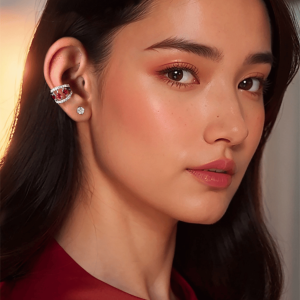 ดีไซน์คล้าย double drape ที่โอบรับใบหูเบา ๆ ด้วยความละมุนตา