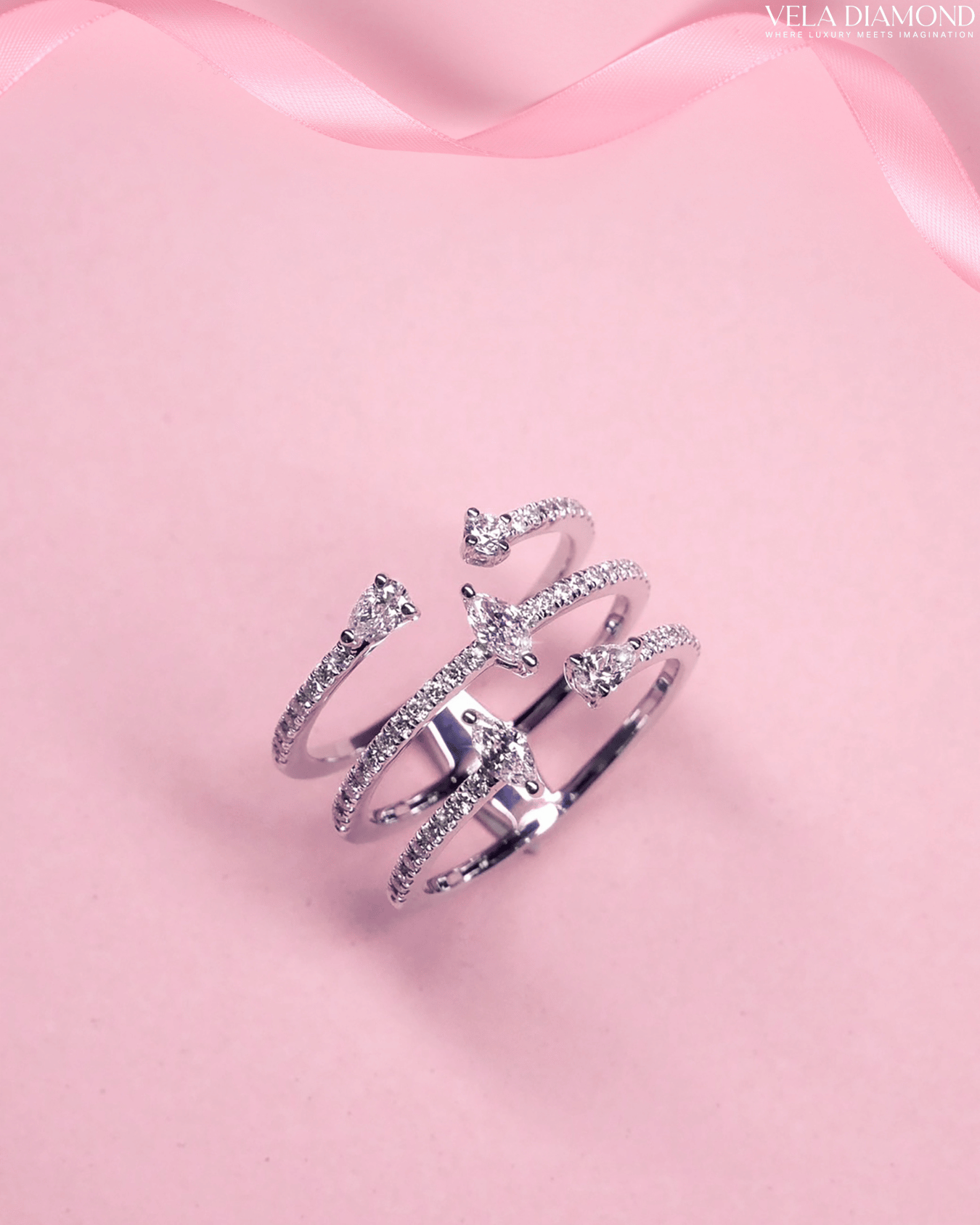 แหวนเพชร Marquise & Pear Flowing Diamond Ring